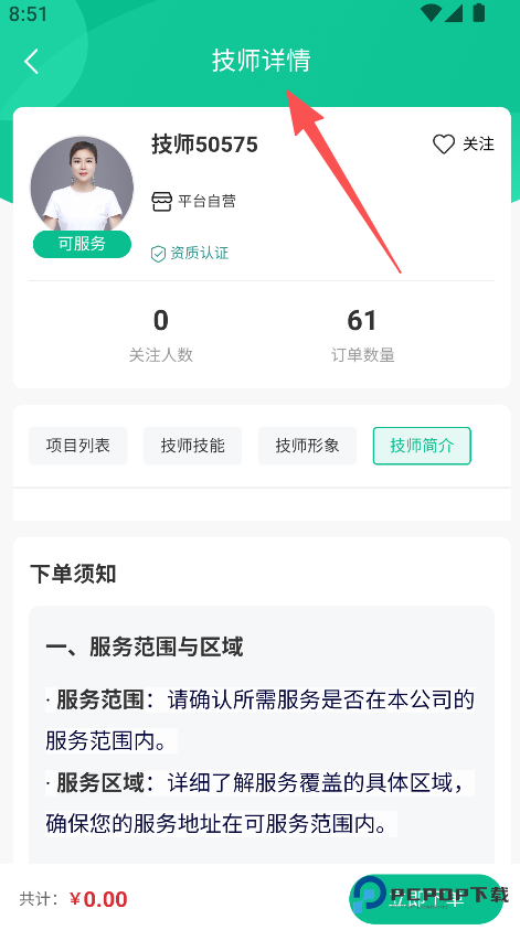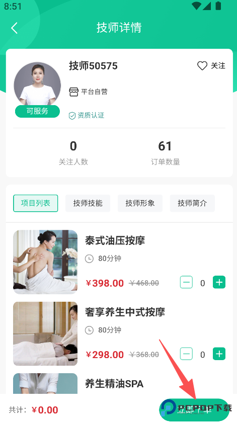 项目信息明确 ,2 、保障服务的规范性与服务质量。时长价格同步展示,进入技师详情页面 ,